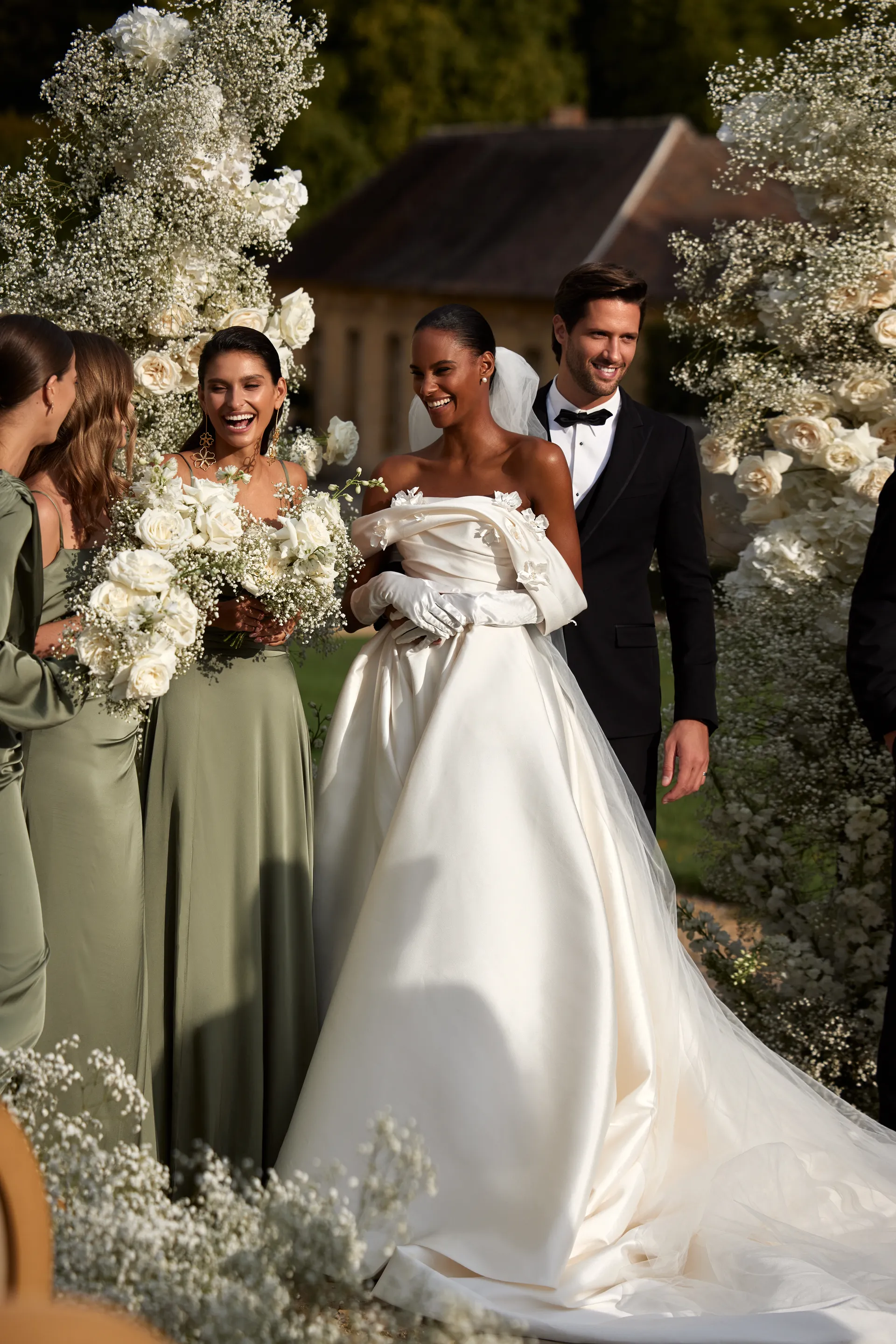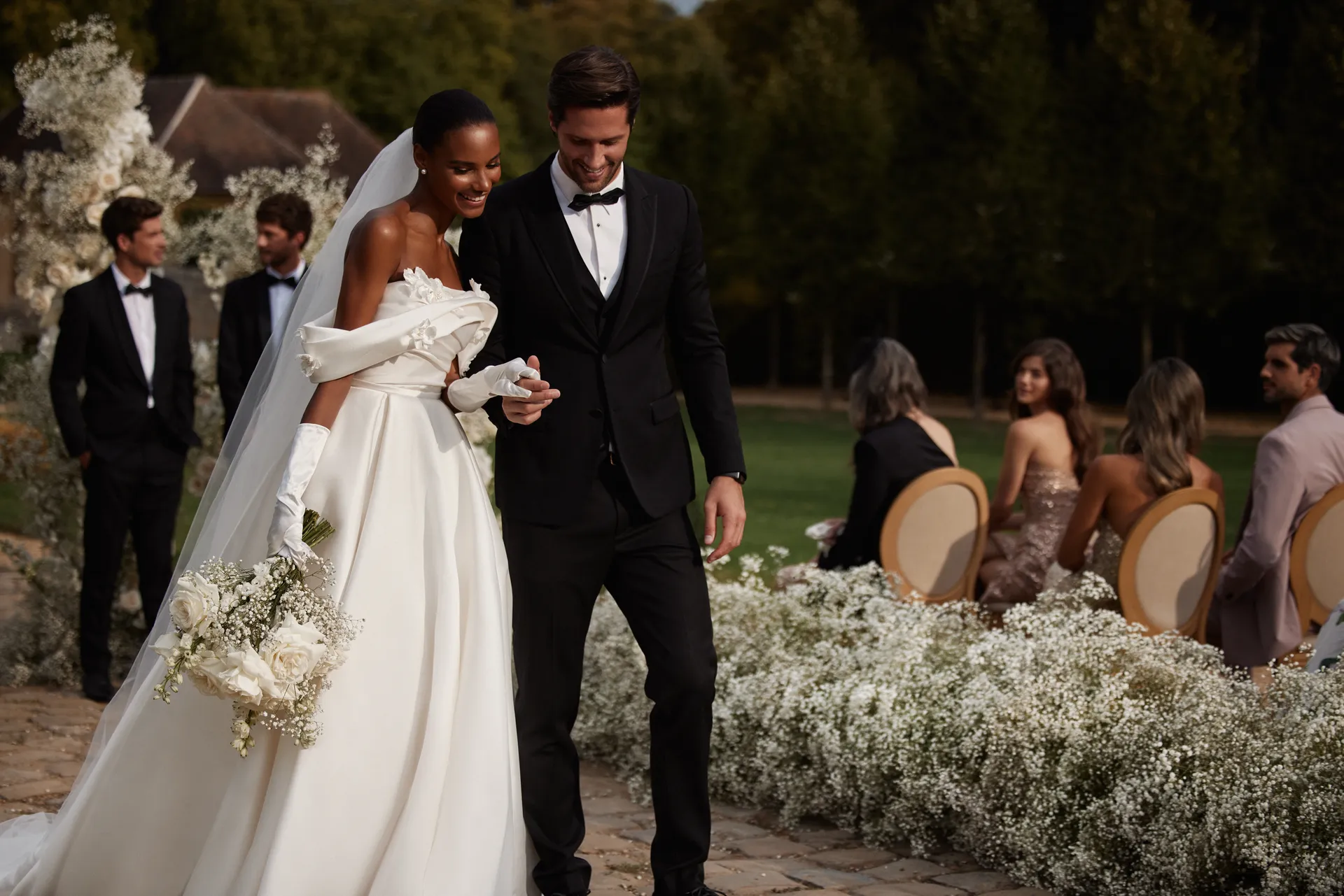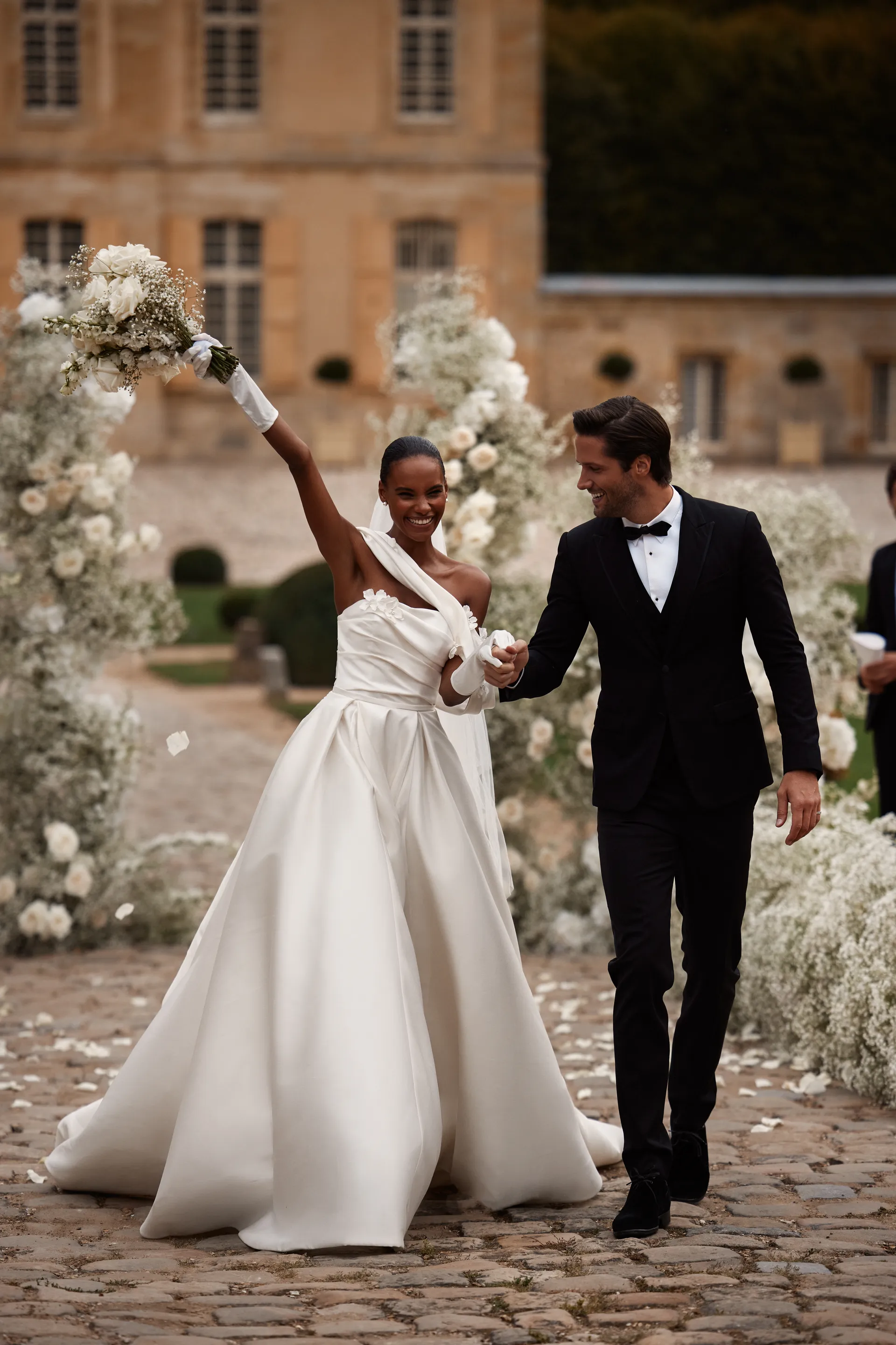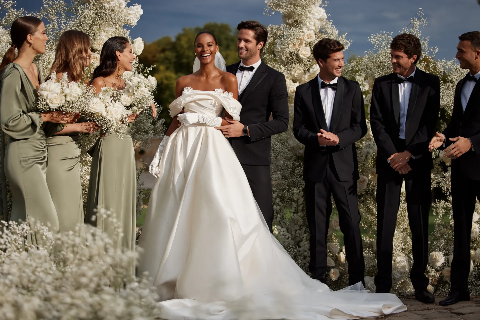 Šik venčanica od mikado svile sa spuštenim ramenima oduševiće vas svojom elegancijom. Umetnički drapirani steznik ukrašen je 3D aplikacijama cveća koje nežno naglašavaju dekolte i stvaraju romantičan izgled. Leđa su otvorena i završavaju efektnim šniranjem, dok dugačak šlep haljini daje dozu raskoši i sofisticiranosti.